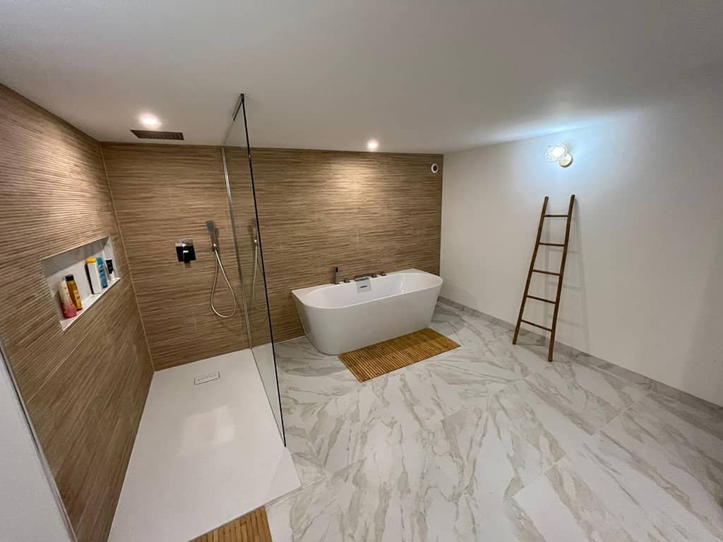 Nos clients ont rénové une maison des années 70 en transformant le sous-sol en pièces habitables. Ils m’ont demandé de l’aide pour leur salle de bain qui avait une forme particulière et qui ne bénéficiait d’aucune lumière naturelle.